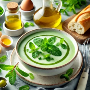 - Pour the soup into individual bowls and sprinkle with finely chopped fresh mint.